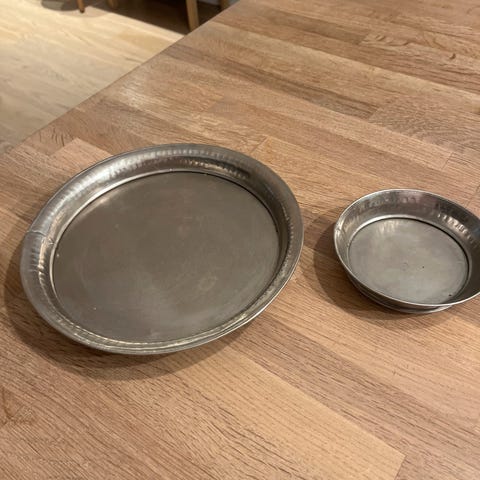 Lysfat på ben, 38 cm i diameter, høyde 9 cm hvorav benene måler 5 cm. Kostet nytt kr 400,-.