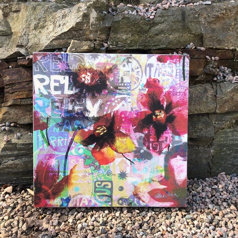 Lerrete viser et svart-hvitt bilde av Charlie Chaplin. Materiale og størrelse er ikke oppgitt.ca 1mx1m