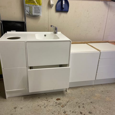Baderomsmøbelsett med speil og servant i hvit