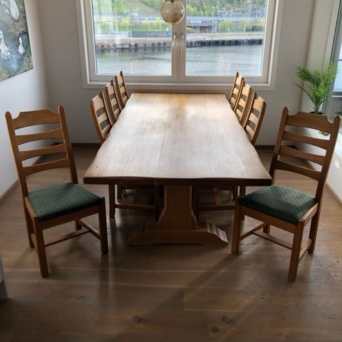 Italiensk design av Rowico med 6 stoler, og 2 tillegsplater på 50 cm bredde.