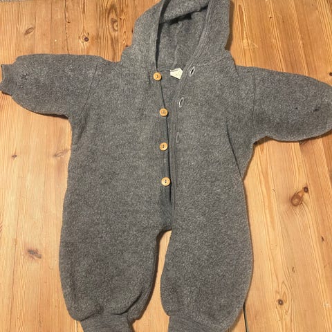 Pent brukt heldress i ubehandlet ullfleece fra Nøstebarn. Str. 50/56 - vi har brukt den fra nyfødt til ca. tre måneder.