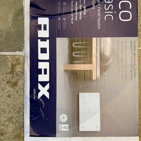 Norel Varmpanel 710307 elektrisk varmeovn med termostat, 750 watt effekt. Produktet er beregnet for veggmontering og har modellnummer 710307. Produsert av ADAX.