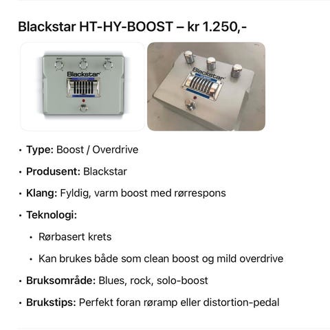 Pedalen er helt som ny og har kun vært brukt hjemme. Denne pedalen er langt bedre enn BOSS chorus blant annet etter min mening; denne låter svært likt chorusen som var i min ganle Roland JC-120. I tillegg har denne pedalen true bypass noe som alltid er et pluss.