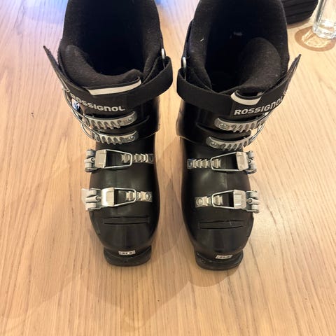 Normal slitasje etter bruk, samt slitasje på skallet ved en av spennene (se bilde). Opplever at dette ikke påvirker noe ved bruk. Gode topptursko.
