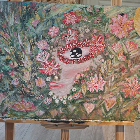 Akryl og olje på lerret, størrelse 60 × 80 cm.