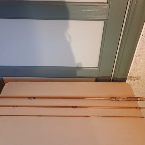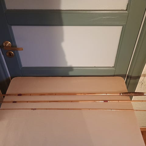 Flott eksemplar av Hørgårds «Nea» splitcane fluestang. Stanga, som er 9 ft, er 3-delt og leveres med originalt stangtrekk. Noen nye surringer er lagt på. Stanga har produksjonsnummer 9435.