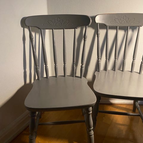 To stoler med gule bein og to stoler med rosa bein gis bort. Må hentes