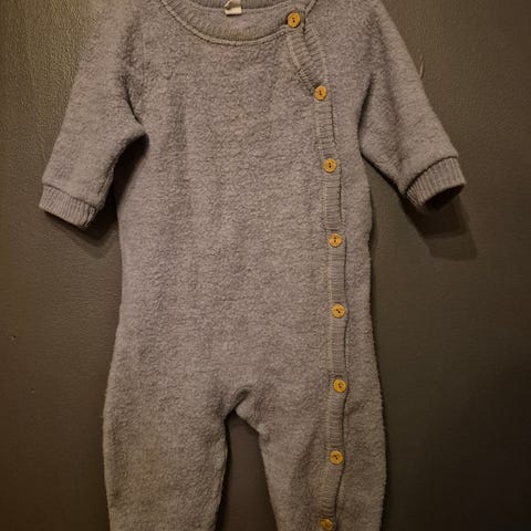 Selger en god og varm heldress i ullfleece. Den en godt brukt, men uten hull eller nevneverdig slitasjer i selve stoffet. Blitt litt nuppete og mangler en knapp på bildet, men denne har jeg nå sydd på.
