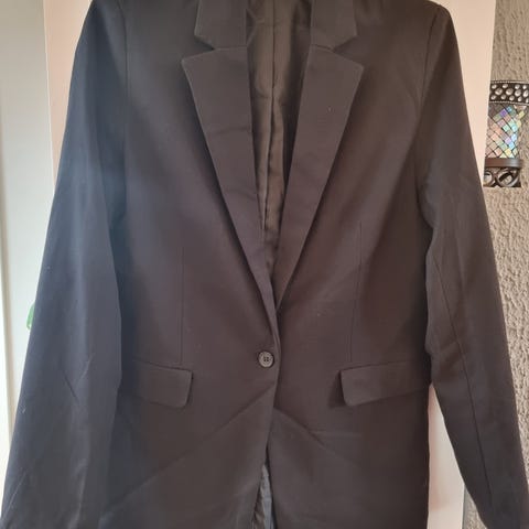 Pen og tidløs blazer fra selected i klassisk mørkegrå farge. Elegant snitt som passer like godt til formelle anledninger som til hverdags. Normal passform, pent brukt og i god stand uten synlige skader.