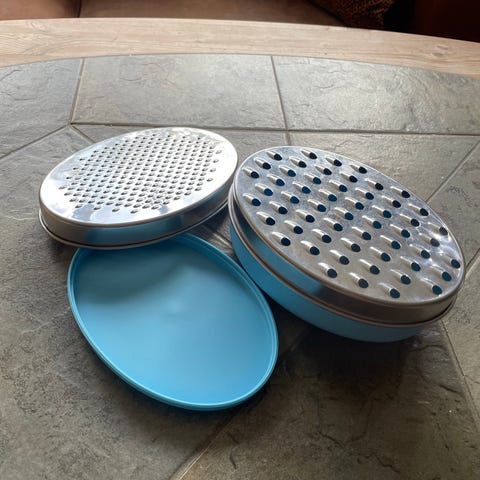 Veldig fint rivjern med tilbehør som kan settes på slik det er lettere å rive.