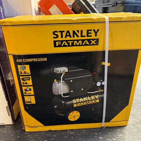 Stanley Fatmax FMXCM0062E kompressor med 2.0 hk motor og 24 liters tank. Kompressoren er svart og egnet for ulike luftkomprimeringsoppgaver. Kan leveres etter avtale, langs E18 fra Tvedestrand til Oslo og langs E6 fra Oslo til Lillehammer.
