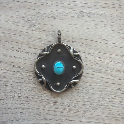 Lite spesielt gammelt anheng med pressete blomster inni.