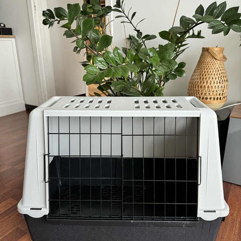 Ferplast Atlas 10 hundebur i svart farge. Buret er laget for å transportere hunder og har metallgitterdør og stofftrekk. Passer til mindre hunderaser. Buret kan festes i bilen.