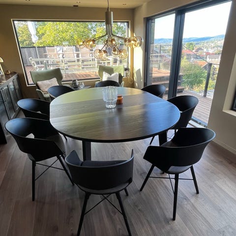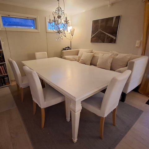Bord er med 2stk ilegsplater, 4stk stoler og sofa(stor) mye møbel igjen her.