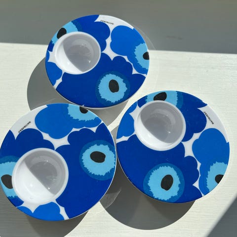 8 eggeglass fra Marimekko. Fremstår ny. 100 kr per stykk.