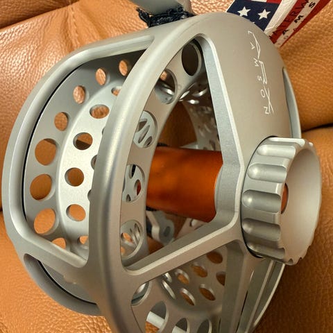 Har ei pent brukt Waterworks Lamson Guru HD -7+ Arctic til overs då eg har to til som dekker behovet mitt. Merk at dette er er varianten med lukka ramme, som er eit must når ein skal bruke denne med tynne skyteliner.