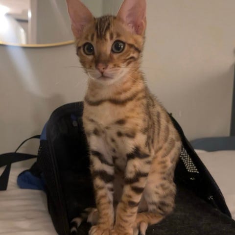 Hun er vant til andre dyr, både katter og hunder, og er en innekatt. Hun er veldig leken, nysgjerrig og kosete – men har også lært seg litt rampestreker.