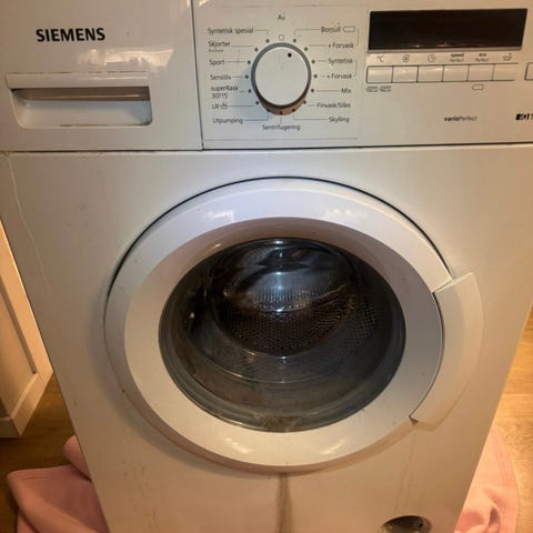 Hengslen på døra knakk, så om man får byttet den så er vaskemaskinen veldig fin og brukbar.