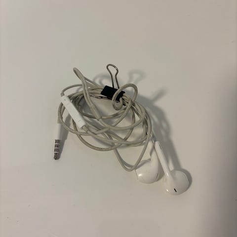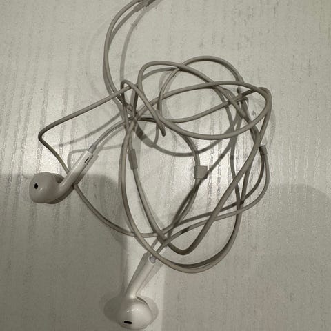 Apple øretelefoner med Lightning-kontakt i hvit farge. Produktet har innebygd mikrofon og fjernkontroll for volum og avspilling. Passer til enheter med Lightning-port.