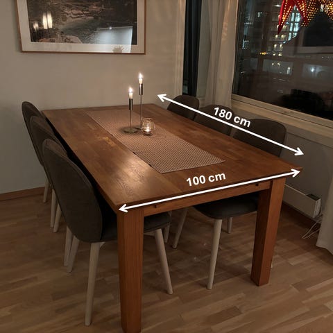 Selger et stilrent og solid spisebord i heltre eik med jernunderstell. Bordet har et moderne uttrykk og passer like godt i spisestuen som på kjøkkenet.