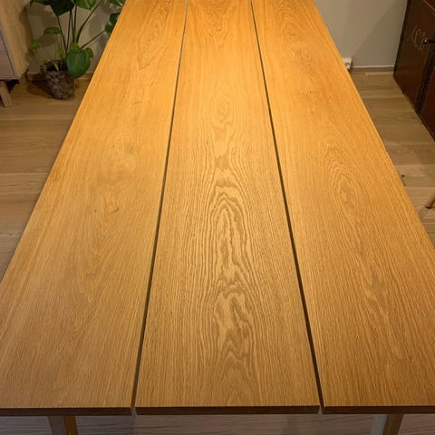 Det følger med ekstra ileggsplater i hvit eik, som gir bordet en total lengde på hele 340 cm – perfekt til store selskap og familietreff.