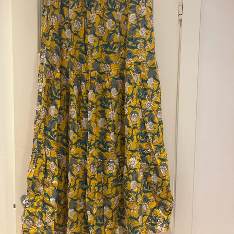 Skjørt i tykt godt materiale som legger seg veldig fint. Dette har vært favorittskjørtet mitt, men har dessverre blitt for lite. Sljørtet er i str. 36, men jeg vil si det er mer som 34.