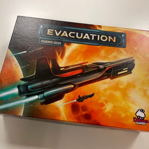 Evacuation er et brettspill med et romfartøy-tema, hvor spillerne må navigere og gjennomføre oppdrag i et fiktivt univers. Spillet leveres i en firkantet eske med illustrasjoner av et romskip i flukt over en planet. Passer for spillere som er interessert i strategiske og temabaserte brettspill.