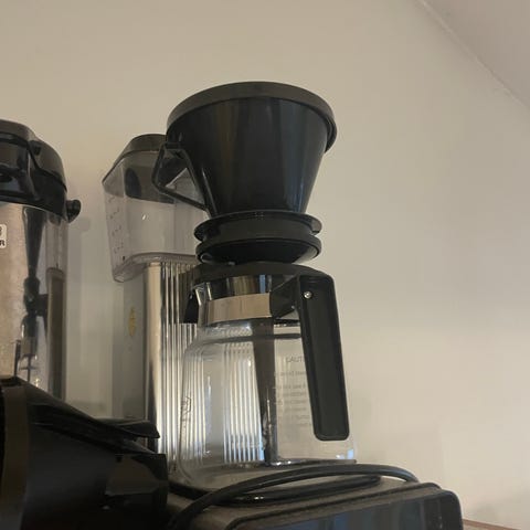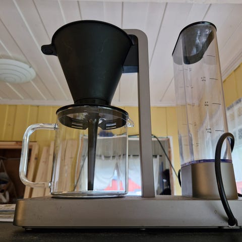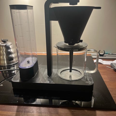 Wilfa Svart Presisjon kaffetrakter med svart og rustfritt stål design. Kaffetrakteren har en glasskanne og er egnet for brygging av kaffe.