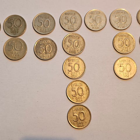 30 stk Svenske 1 kr 0g 50 øre Totalt 190 gr 400 Sølv