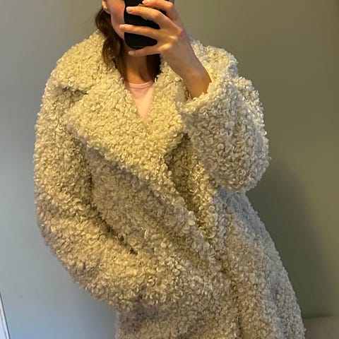Pen Brun/Beige kåpe fra River Island i str 12. Liten i str, derfor er den en M. Elegant og stilig kåpe. Er litt nuppete under armene og på siden, men ikke veldig synlig.