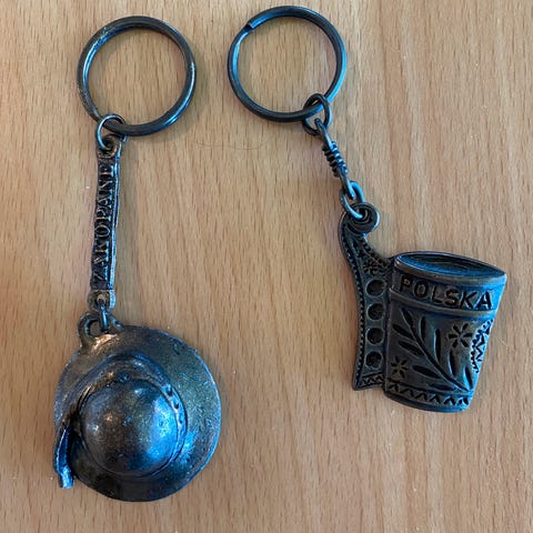 Pent brukt nøkkelring selges. Laget av fiskelær, normal slitasje: små riper i metallet. Skinnet er helt og fint, akkurat behandlet med lærpleie.