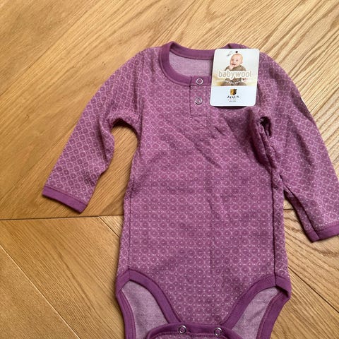Hel og pen ullbody fra Janus med blonder. En liten misfarging nederst (se bilde). Mulig den går vekk etter en runde til i maskinen med flekkfjerner.