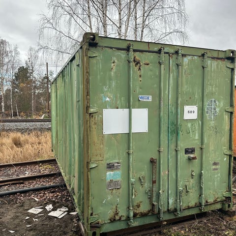 Gammel pumpestasjon, utendørs bod med grå ytterkledning og rød dør. Boder er utstyrt med elektrisk anlegg og ventilasjon. Egnet for oppbevaring av ulike gjenstander. Bygget er frittstående og har takrenne for avrenning av vann. Mangler gulv