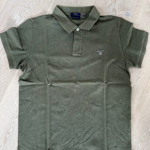 GANT Polo skjorte i størrelse L for herre. Skjorten er grønn med detaljer i rødt, laget av bomullsmateriale.