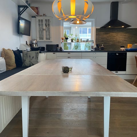 Vi selger vårt flotte og robuste spisebord da vi behøver et som kan bli enda lengre.