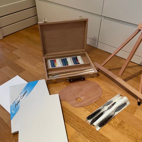 Akrylmaling sett med pensler og palett