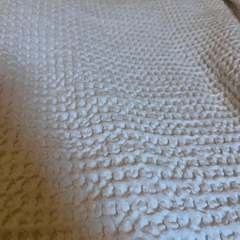 IKEA sengeteppe i hvitt stoff med quiltet tekstur. Nyvasket