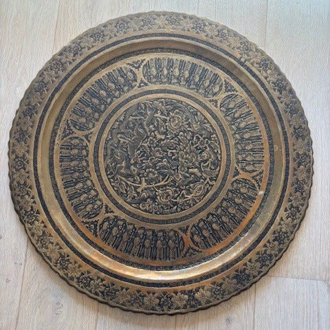 Håndlaget fat/bilde i kobber fra Egypt