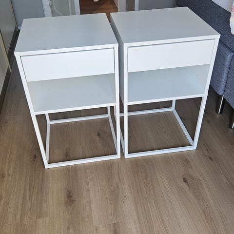2 små nydelige nattbord , med en skuff.