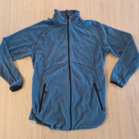Svart og blå allværsjakke (L) med strikk i midjen for god passform over magen, hette og flere lommer. Rosa jakke (XL) er mer som en tynn treningsjakke.
