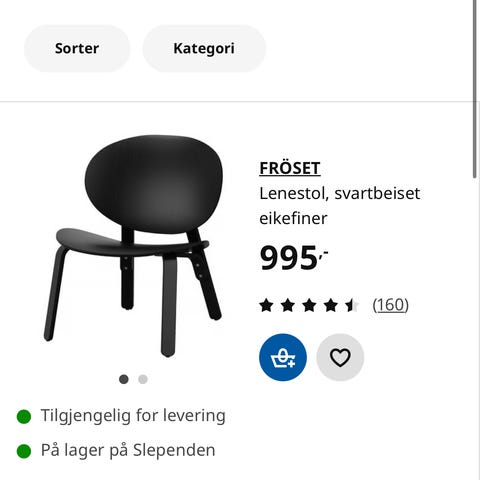 FRÖSET lenestol fra IKEA, selges pga flytting, hel og pen stol, kun brukt til å stå i gangen, som ny