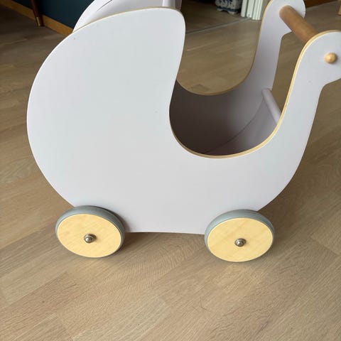 Sebra dukkevogn. Veldig fin og godt brukt. Meget populær. Men se siste bile (under vogna foran er den blitt splittet opp i malingen. Selges derfor billig.