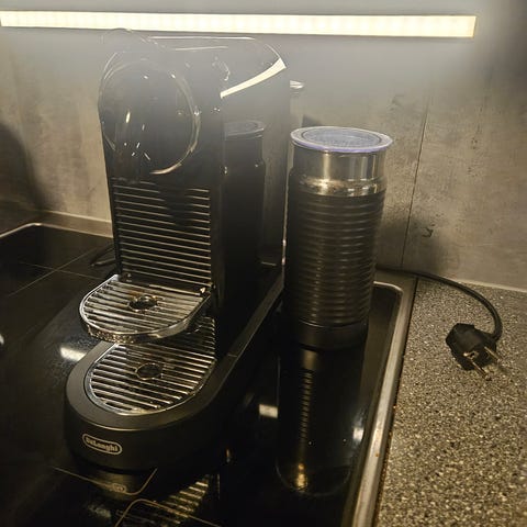 Nespresso kaffemaskin med melkeskummer hvit og svart