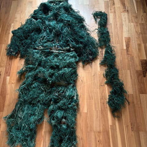 Ghillie «suit» i tre deler. Se bilder. Helt nytt og ubrukt. Størrelse ca large .