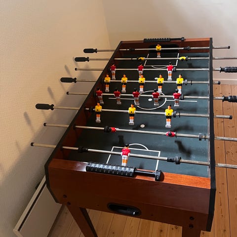 Multi-spillbord med flere spillmuligheter inkludert fotball, luft hockey, biljard og bordtennis. Pent brukt med alle deler.. Leveres med utstyr til de ulike spillene som baller, køller og pucker.