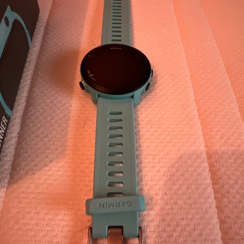 Garmin Forerunner 55 smartklokke i svart farge. Leveres med original eske og ladekabel. Egnet for aktivitetsovervåking og trening.