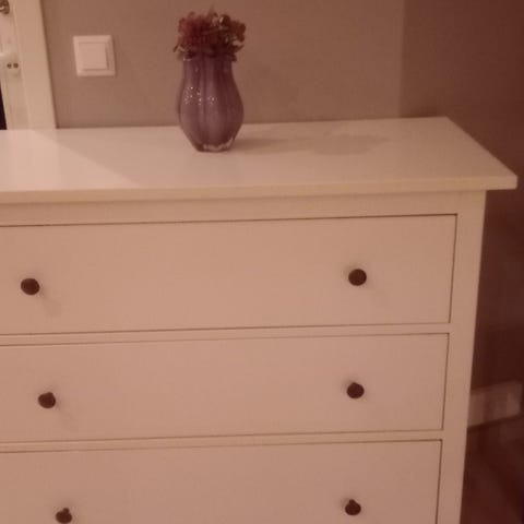 Romslig kommode fra Skeidar i hvit med 6 skuff selges.
