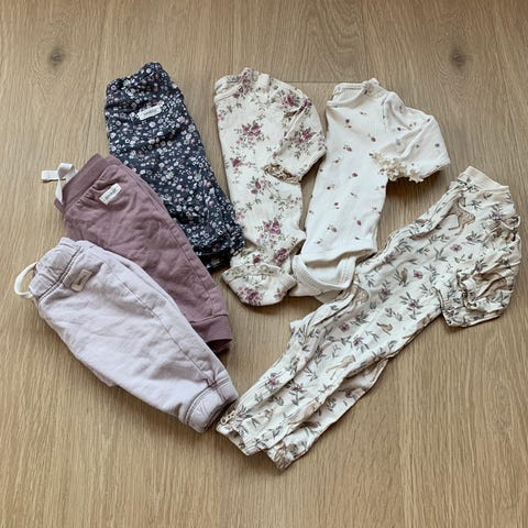 Klespakke med bukser til baby i 62, jente pent brukt.