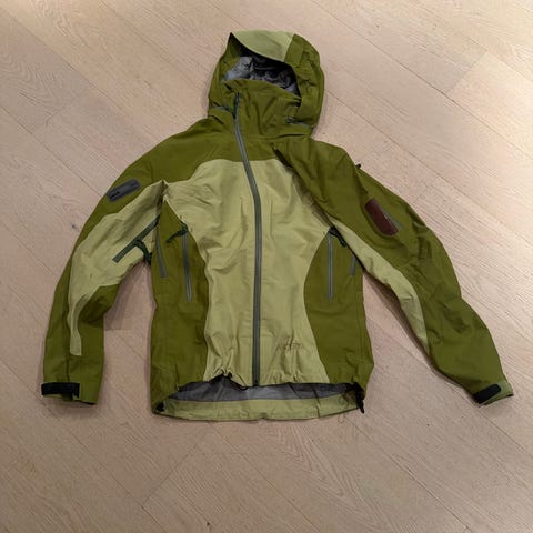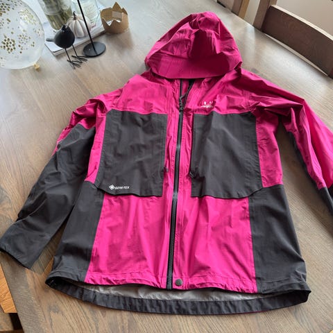 Haglöfs Andre jakker i størrelse M for kvinner. Jakken er oransje og laget av Gore-Tex materiale, som gir vanntett og pustende egenskaper. Passer til utendørsaktiviteter hvor beskyttelse mot vær er nødvendig.