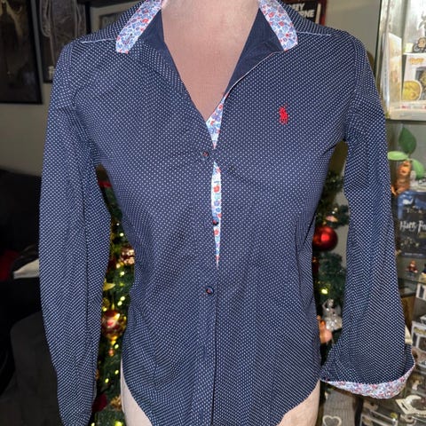 Polo Ralph Lauren Slim Stretch skjorte for kvinner i størrelse S. Skjorten er blåstripet og laget av bomull. Designet har en smal passform og langermet stil. Selges da den ikke blir brukt✨